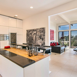 Contemporary 3-bedroom plus office / 4 baths, fully furnished home gated in the prominent hollywood hills neighborhood.floor to ceiling glass windows offer stunning views of the city and ocean in a secluded setting. elegant limestone and hardwood floors, 12ft ceilings, two fireplaces, spa-like master suite with steam-shower and city views.gourmet kitchen with center island and wine refrigerator. features large wrap-around hardwood deck and a jacuzzi in the garden.